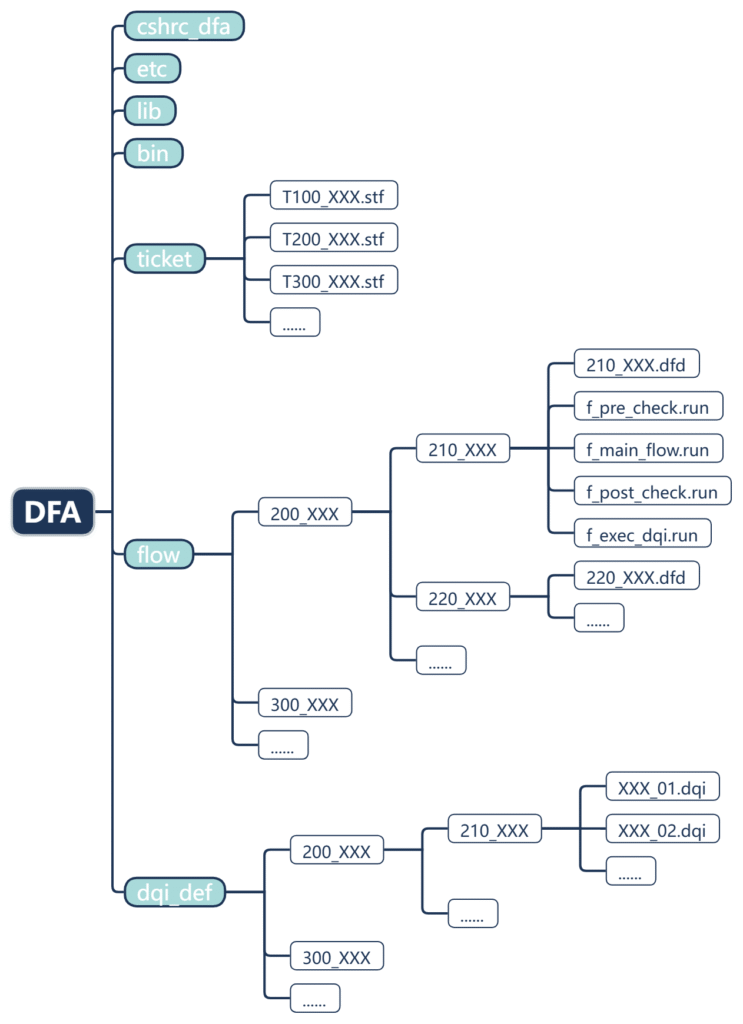 DFA(Design Flow Automation)是DOP(Design Operation Platform)的核心模块,通过标准书签文件(standard ticket format)和流程定义文件(design flow definition),实现集成电路芯片设计流程的标准化和自动化,使用者只要按照需求填入Ticket中的参数,就可以调用系統预先设定的Design Flow流程范本, 产生可执行的EDA工作环境目录。其核心价值包括: