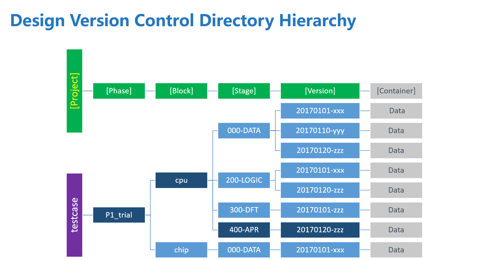 建立本地设计资料目录结构,共 4 层:<PHASE>/<BLOCK>/<STAGE>/<VERSION>。